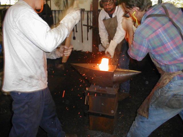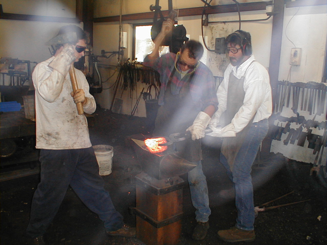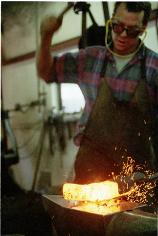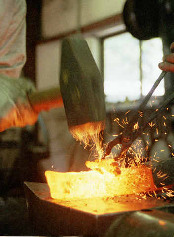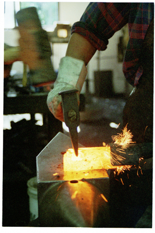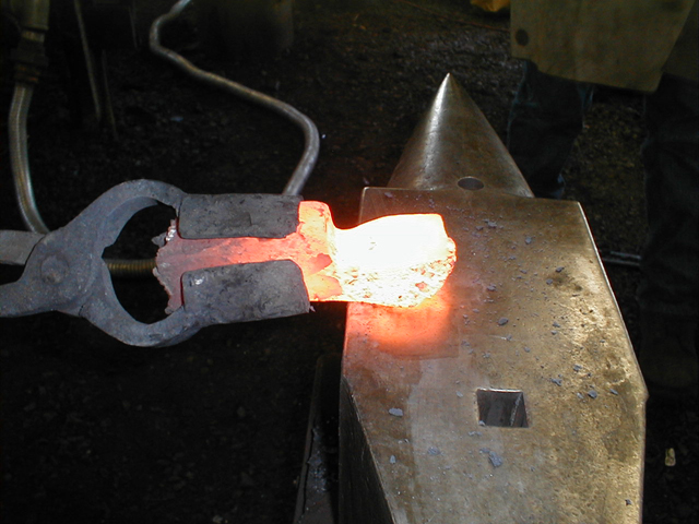 and brought here to the anvil where we hammer it into a billet.